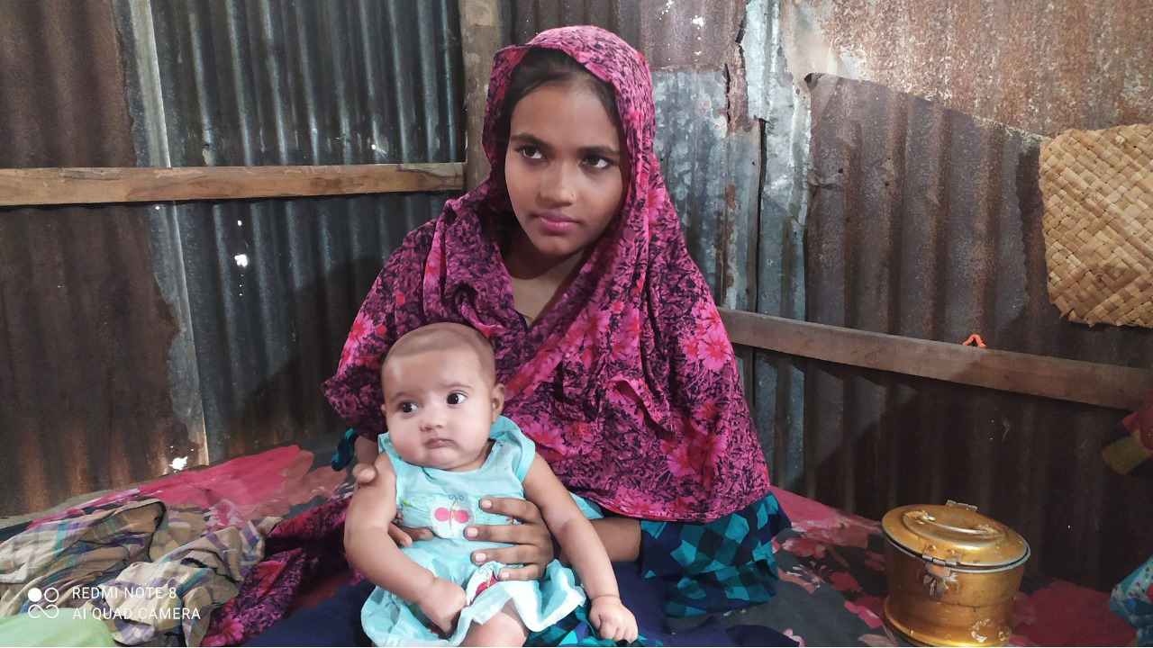 ১৪ বছর বয়সেই মা হয়েছে জাকিয়া। এখন চার মাসের শিশুকে কোলে নিয়ে সংসার সামলায় সে। জানে না শিশু অধিকার কী, জানে শুধু—'খেয়ে বাঁচলেই শান্তি।'