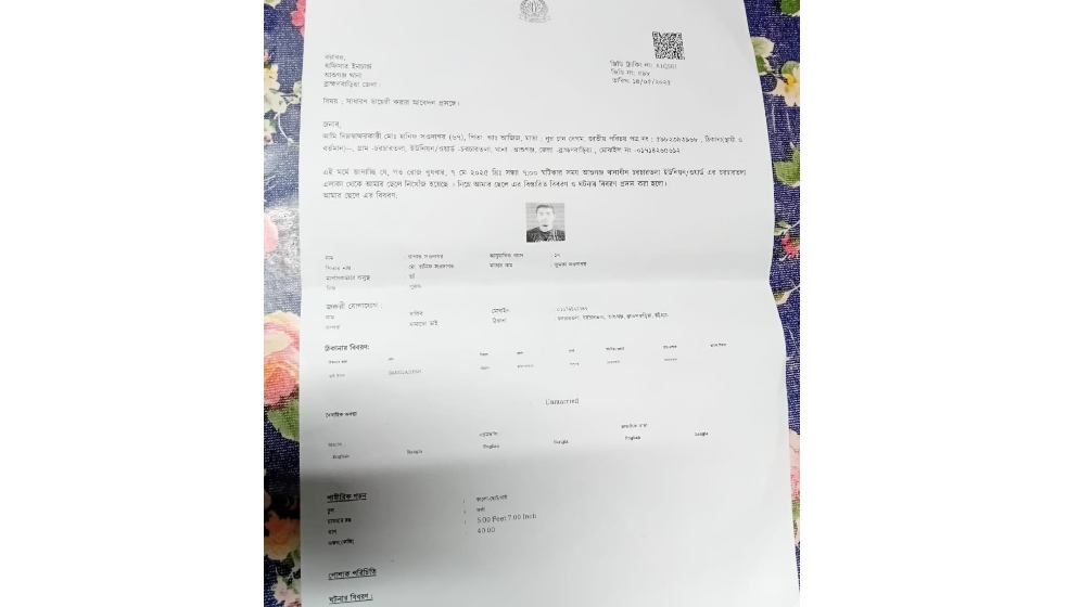 সম্পর্কে কারও কাছে কোনো তথ্য থাকলে ০১৭১৪-২৬৫৬১২ এই নম্বরে যোগাযোগ করার অনুরোধ জানানো