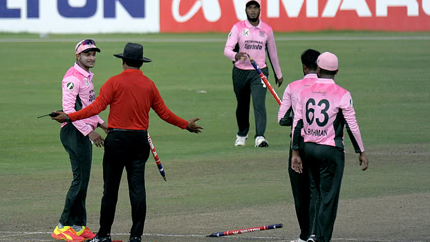 এলবিডব্লিউর আবেদনে আম্পায়ার সাড়া না দেওয়ায় ঘরোয়া ক্রিকেটে সজোরে স্টাম্পে লাথি মেরে ক্রিকেটকে কলঙ্কিত করেছেন সাকিব।