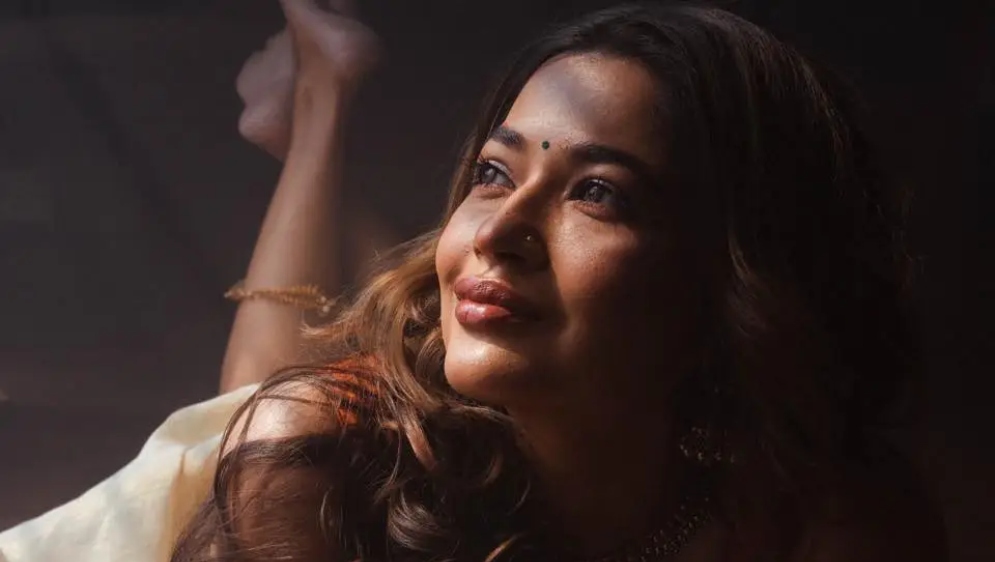 ফ্রেমে দেখা যায়, তিনি পরেছেন সোনালি পাড়ের ঐতিহ্যবাহী কেরালা কটন শাড়ি। সঙ্গে রয়েছে টেরাকোটা কমলা রঙের স্লিভলেস ব্লাউজ, যা পুরো লুকে উজ্জ্বলতা ও ভারসাম্য এনেছে। অলংকার হিসেবে বেছে নেওয়া হয়েছে দেশিয় ব্র্যান্ড ‘গ্লুড টুগেদার’-এর নকশা করা গয়না, যা বাঁধনের নিজস্ব স্টাইল ও পছন্দের পরিচায়ক।