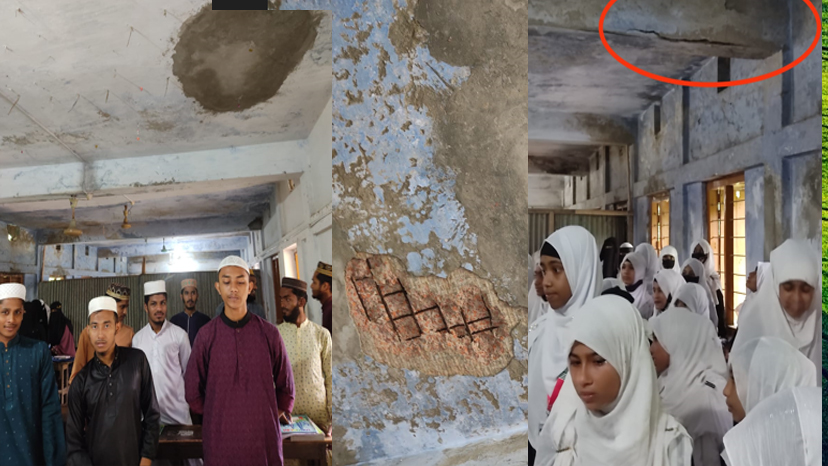 খসে পড়ছে শত বছরের পুরাতন মাদ্রাসার ছাদ, আতঙ্কে শিক্ষার্থীরা
