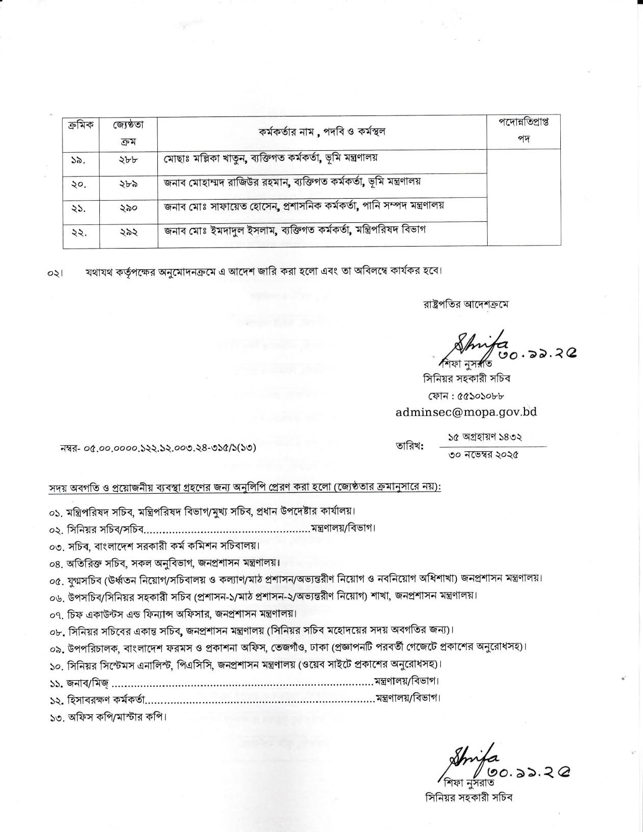 সহকারী সচিব পদে পদোন্নতি পেলেন ২২ কর্মকর্তা