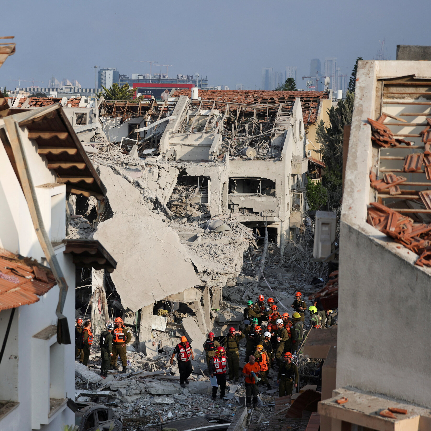 ইরানের হামলায় বিধ্বস্ত ভবন পরিদর্শন করছেন ইসরাইলি জরুরি সংস্থার কর্মীরা। ছবি: সংগৃহীত