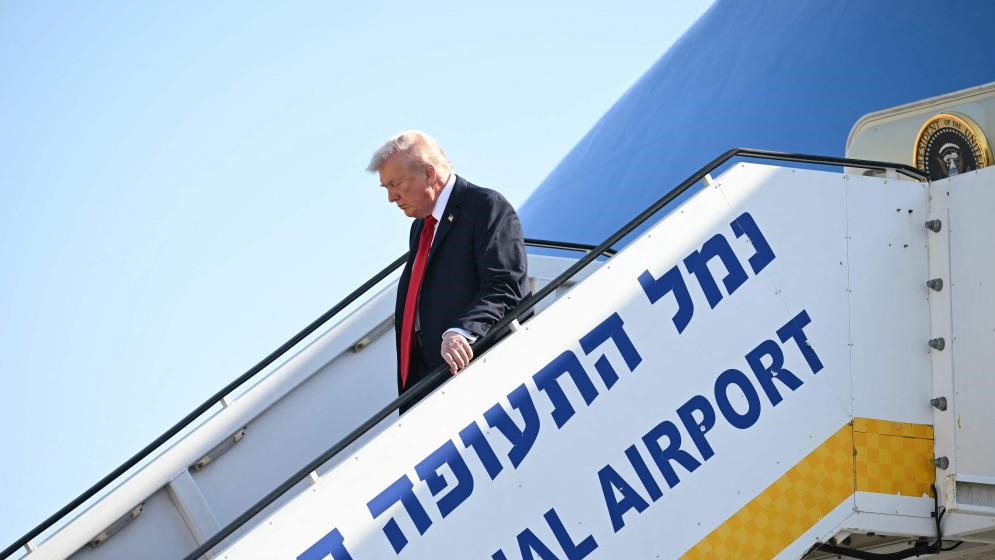 এর আগে ট্রাম্পকে বহনকারী এয়ার ফোর্স ওয়ান উড়োজাহাজটি ইসরাইলের বেন গুরিওন বিমানবন্দরে অবতরণ করে। উড়োজাহাজ থেকে নামার সময় তাকে লাল গালিচায় স্বাগত জানানো হয়। এ সময় বেনিয়ামিন নেতানিয়াহুসহ উপস্থিত সকলের সঙ্গে তিনি কুশল বিনিময় করেন।