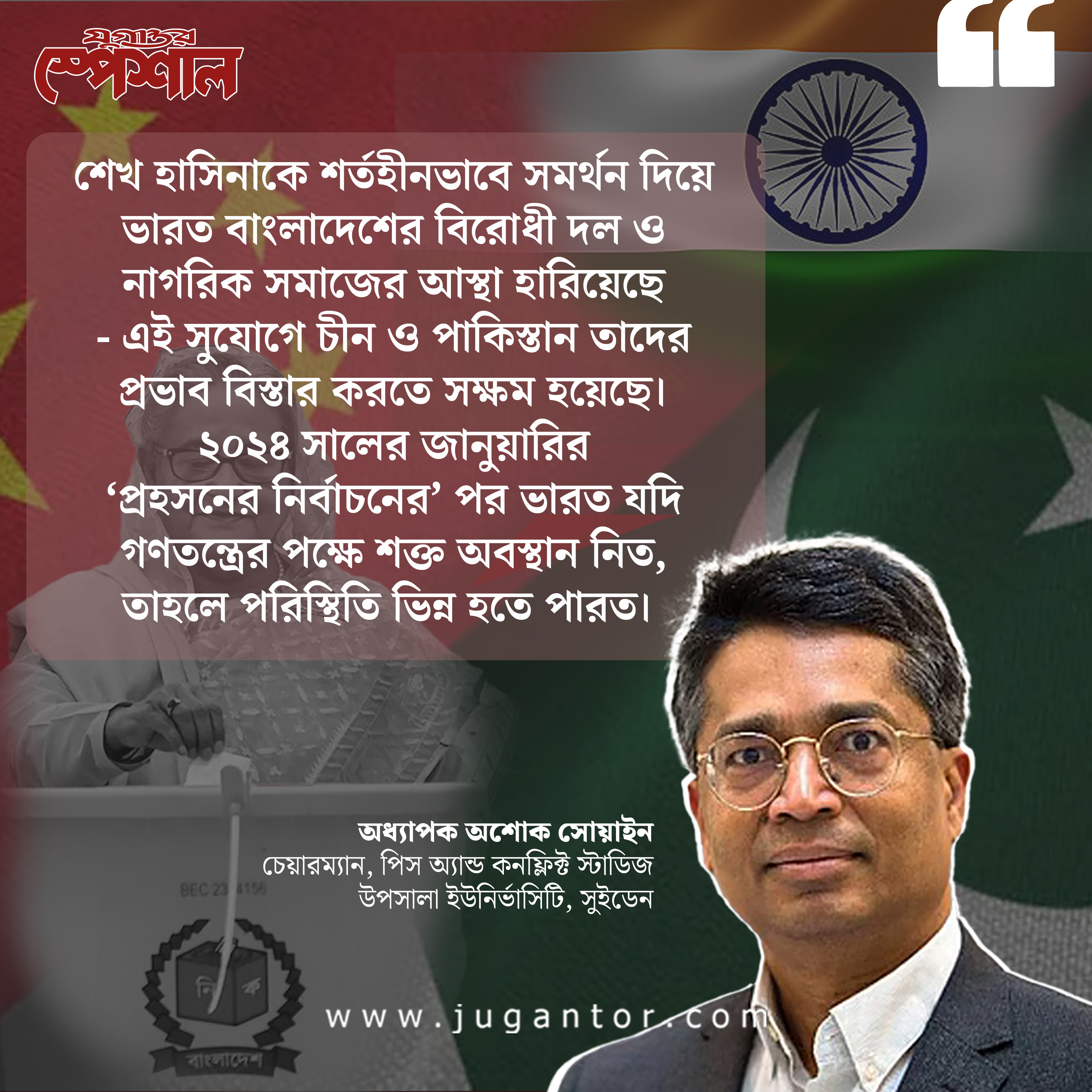 শেখ হাসিনাকে শর্তহীনভাবে সমর্থন দিয়ে ভারত বাংলাদেশের বিরোধী দল ও নাগরিক সমাজের আস্থা হারিয়েছে—এই সুযোগে চীন ও পাকিস্তান তাদের প্রভাব বিস্তার করতে সক্ষম হয়েছে। ২০২৪ সালের জানুয়ারির ‘প্রহসনের নির্বাচন’-এর পর ভারত যদি গণতন্ত্রের পক্ষে শক্ত অবস্থান নিত, তাহলে পরিস্থিতি ভিন্ন হতে পারত।