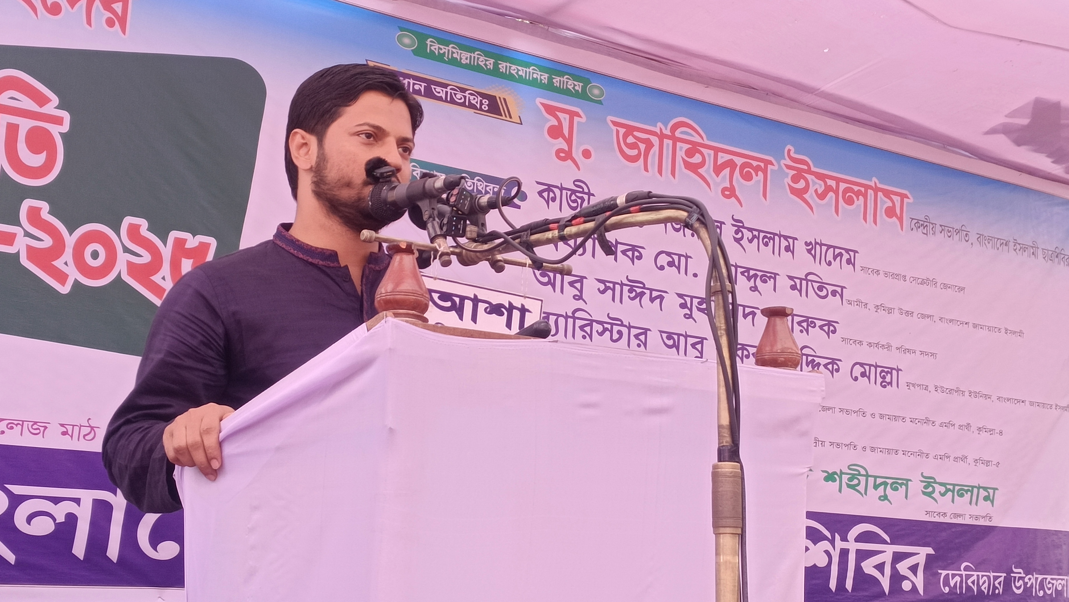 শনিবার দুপুরে বাংলাদেশ ইসলামী ছাত্রশিবির কুমিল্লার দেবিদ্বার উপজেলা শাখার উদ্যোগে আয়োজিত সাবেক নেতাকর্মীদের প্রীতি সমাবেশে প্রধান অতিথির বক্তব্যে শিবিরের কেন্দ্রীয় সভাপতি মো. জাহিদুল ইসলাম এসব কথা বলেন।