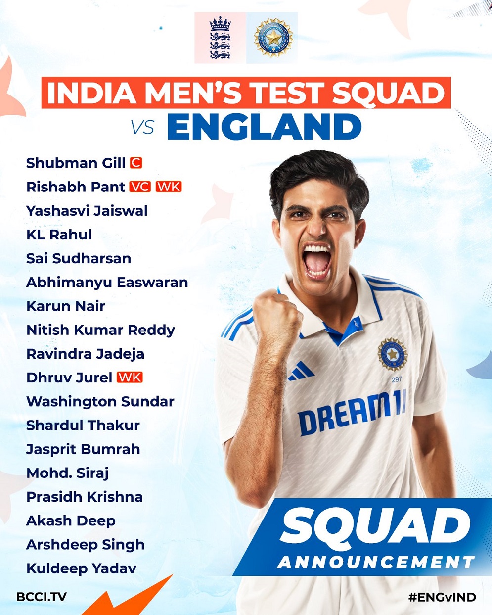 ভারতের নতুন অধিনায়ক শুভমন গিল। তার ডেপুটি ঋষভ পান্ত। ইংল্যান্ড সিরিজ থেকেই পাচ্ছেন নতুন দায়িত্ব।