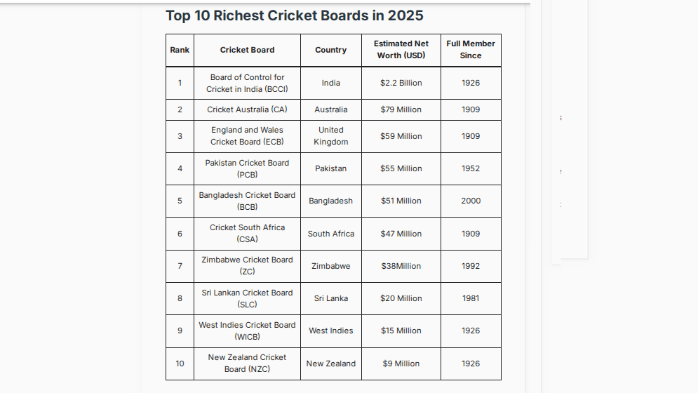 কোন দেশের ক্রিকেট বোর্ড কত টাকার মালিক-