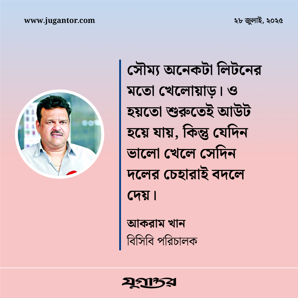 এবার তার ভূয়সী প্রশংসাই করেছেন সাবেক অধিনায়ক আকরাম খান। তিনি জানিয়েছেন, বোলারদের ওপর আধিপত্য বিস্তারে সৌম্যর জুড়ি মেলা ভার। তিনি যেদিন ভালো খেলেন, সেদিন দলের চেহারাই বদলে যায়।